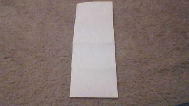 Solo dobla el papel de izquierda a derecha ahora. El papel debería ser delgado, como en la foto. También podría dar vuelta el papel hacia los lados, como la segunda foto.