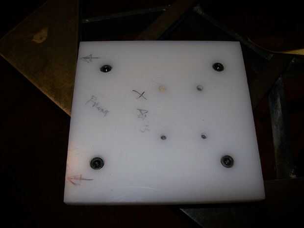 Ahora instalar los 3 1/2" largo de 3/4" Delrin Deslice los retenedores por perforación y roscado de los agujeros y luego atornillándolas a las diapositivas con pernos de 3/4" de largo.