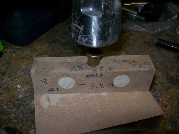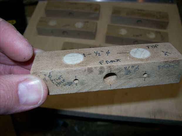 Pulse en los bujes de bronce en el orificio de 3/8" en cada bloque. Verifique el ajuste de la varilla ACME en cada buje para asegurarse de que gire libremente. El buje de bronce no es necesario si usted hace los bloques de Delrin - en lugar de ello perfore un orificio de 1/4" para la barra ACME (los actos de Delrin como el buje).