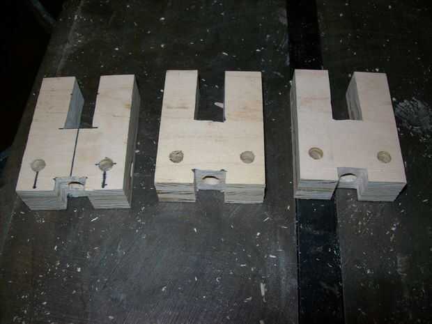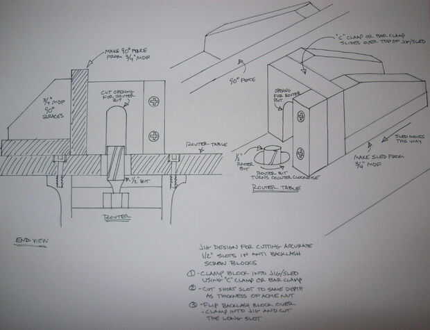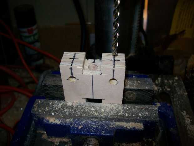 Mis bloques fueron cortados a mano y se nota! La mejor manera de cortar la 1/2" ancho ranuras para las tuercas ACME es hacer una plantilla y cortar a través de la mesa de fresadora. Los bloques de tornillo de la abrazadera en la plantilla y luego ejecute la plantilla sobre la broca de fresadora para cortar la ranura. No intente cortar la ranura completa profundidad en un solo paso - sólo lentamente aumentar la altura de la broca y hacer múltiples cortes hasta obtener la profundidad deseada. Corte la ranura para el lado de primavera no primero y luego se voltea la pieza a cortar la otra ranura-que manera de las tuercas ACME están garantizados para estar en perfecta alineación.