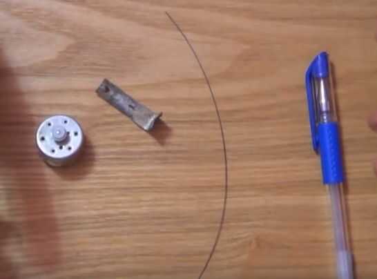 Necesita: pluma de tinta gel con relleno, cuerda de guitarra, motor de un reproductor con el rodillo de plástico, alambres, módulo de fuente de la energía.