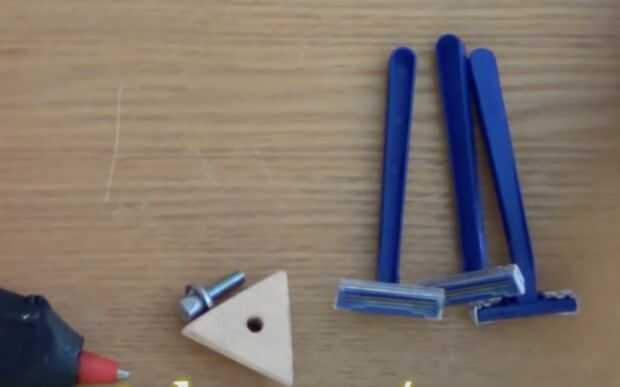 Cómo hacer un mini trípode con la maquinilla de afeitar de seguridad (2 / 4 paso)