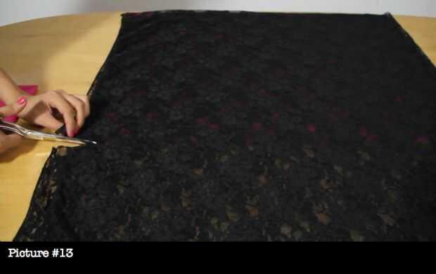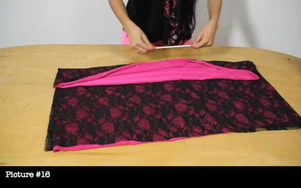 ahora con el encaje mide y corta de acuerdo a la falda.