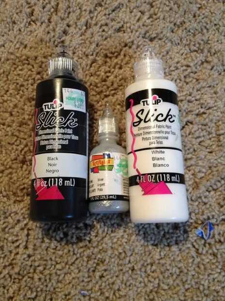 Con la tela dimensional pintura (gris) y hacer sus gafas entonces hacen sus ojos con el blanco y negro y esperan a que se seque te también pueden hacer su boca!