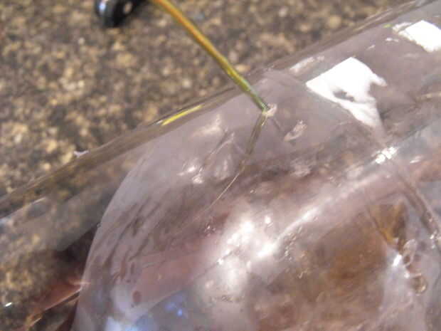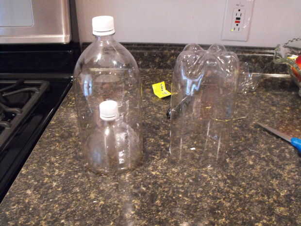 Después le taladro el golpe de calor un preorificio para insertar tus tijeras y cortar la parte superior de la segunda botella al ras con la parte inferior de la primera botella.