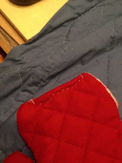 . Coser el parche de dedo en el mismo lado del guante que hizo el parche de pulgar. Coloque el parche para que la pieza de la espátula se extenderá desde el extremo de la mitt ¾" cuando se insertan en el bolsillo. NO coser la pieza de la espátula dentro del parche. Salir de un bolsillo que se puede acceder desde fuera de la mitt de la pieza de la espátula al ser insertar o quitar de. Asegúrese de y hacer el parche costuras sienten como un guante normal desde el interior, pero aparecen como si hay un bolsillo en el extremo de los dedos desde el exterior.