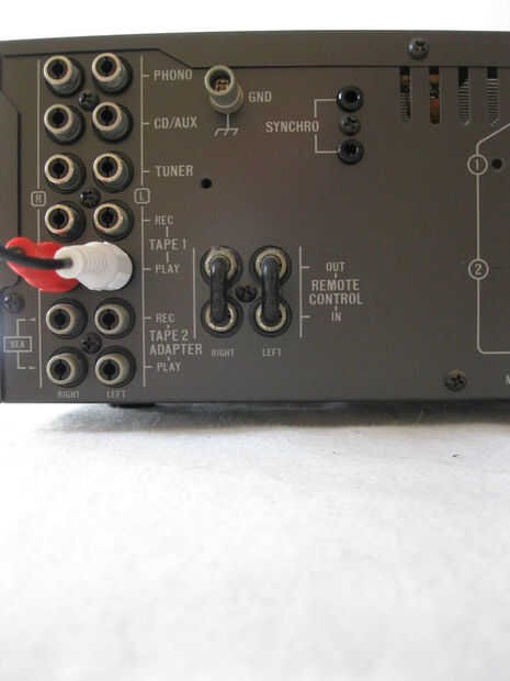 Si el tocadiscos no tiene un preamplificador incorporado, necesitará un receptor o un preamplificador separado. Un receptor es capaz de tomar insumos de un Tuner, Phono(graph), cinta y Aux(ilary) y a través de la ruta para encender altavoces. También contiene el amplificador de potencia necesario para amplificar la señal del tocadiscos. Usted debe ser capaz de conectar los cables RCA del tocadiscos a las apropiadas salidas RCA en la parte posterior del receptor (generalmente marcado fono). Luego conecte otro par de cables RCA de cinta (REC) en el receptor a la entrada (registro) de la platina de cassette. Tenga cuidado de no conectarlo a la cinta (juego de). Seleccione PHONO en la parte frontal del receptor.