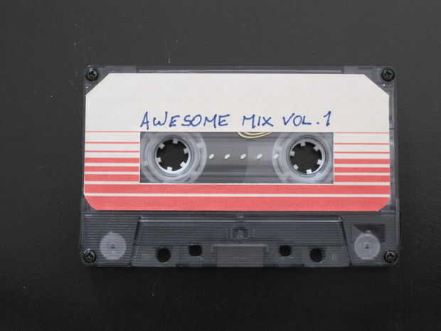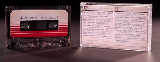 El anuncio de Marvel guardianes de la galaxia cinta oficial de Awesome Mix Vol. 1 todo este trabajo puede hacer un punto discutible, pero al menos has aprendido cómo manejar una casetera, un tocadiscos y un receptor, todo este además para aprender el arte perdido del mixtape. Además muestra una gran interpretación de una tarjeta de J.
