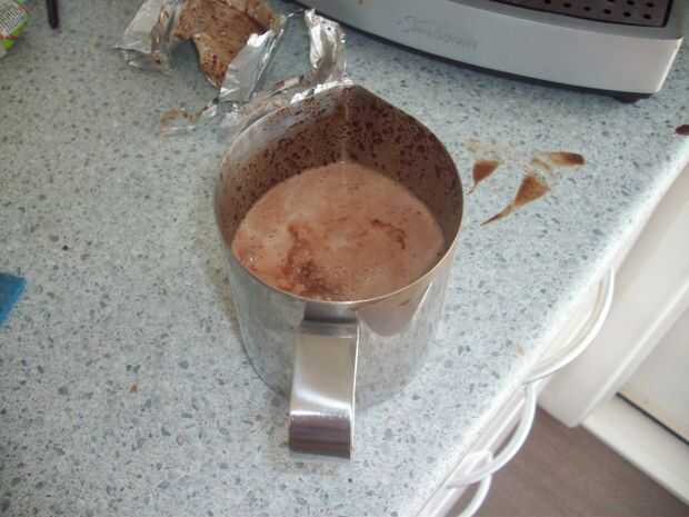 Cuando se haya derretido el chocolate agregar la leche y espuma (si tienes un vaporizador).