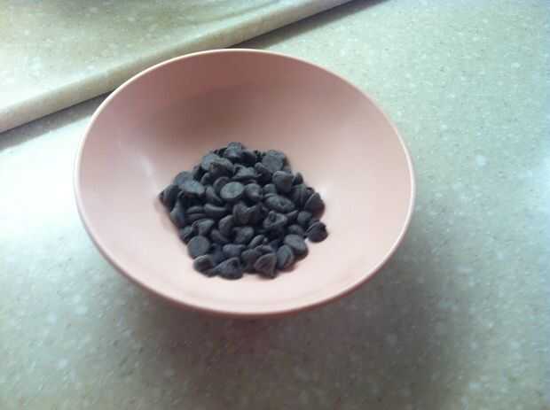 - Que 2-3 cdas de bittersweet chocolate en un plato pequeño. La foto de arriba muestra el tamaño que me gusta usar.