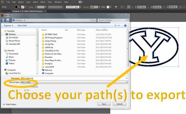 4. Guarde su camino como un. Archivo SVG. Este tipo de archivos ahora puede ser importado en cualquier software de modelado 3D.