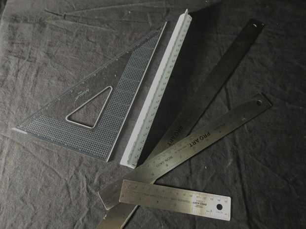 - Regla triangular (Plan y sección de dibujo, pegar verticalmente, etc..)
