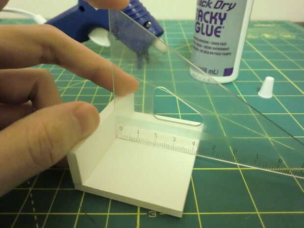 Mientras pega dos trozos, le sugiero que para utilizar regla triangular o cuadrada, ayudando a sus grados de esquina exactamente 90. También puede usar esquina del gobernante para limpiar pegamento desbordado en su modelo.
