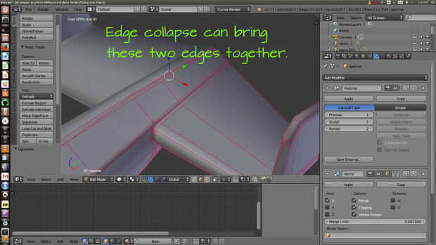 Puede reunir a los bordes seleccionando las aristas que no desea Presione X para abrir el menú eliminar y golpe de borde de colapso.