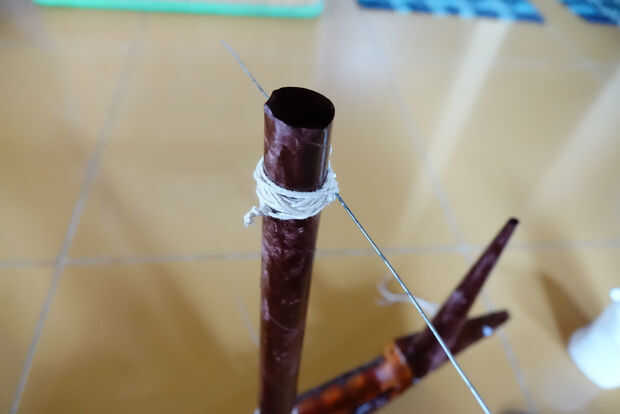 - Dos trozos de alambre se utilizará para los mástiles de la izquierda y derecha, el mástil requiere cuatro.