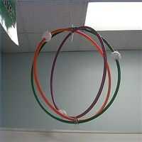 Tomar las tres diferentes-aros del hula y atarlos en la parte superior e inferior con la línea de pesca.