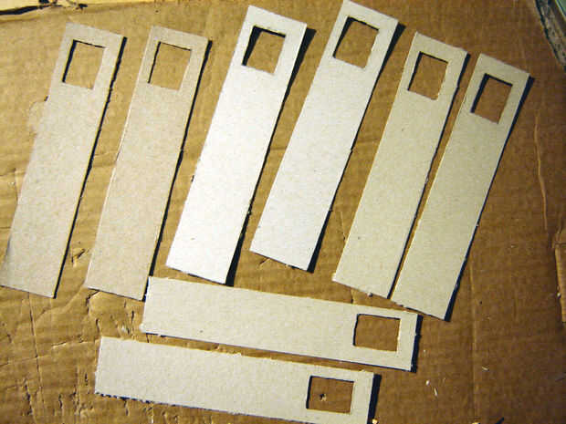 Utilizando las plantillas desde el archivo templates.pdf como guía, cortar las siguientes piezas de cartón: