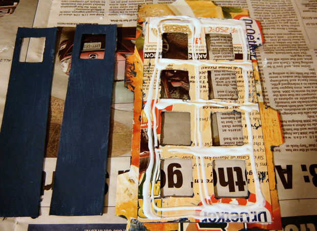 3. pegue dos del signo tableros juntos, uno encima del otro, (sólo debían pintar 4 de la 8 muestra tableros - el fondo que realmente no necesitan pintura, supongo que quise llevar), la repetición para que tenga un total de 4.