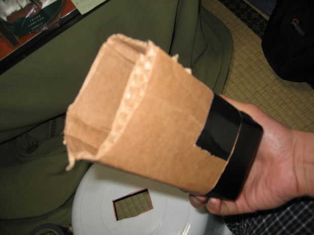 Corte el tubo de cartón en cuatro lugares y se doblan hacia fuera. (imagen 2)
