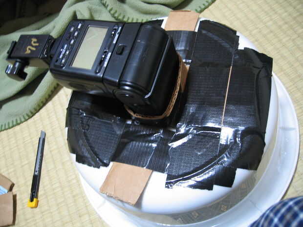 Cinta de las aletas en la parte trasera de la canastilla, asegurándose de alinear el cabezal del flash con el agujero (imagen 3)