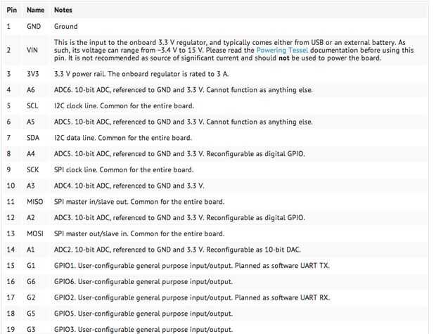 En la parte superior de su README, escribe que los pernos deben ser conectados a que entre el Tessel y el hardware externo. Una imagen de la instalación también sería útil incluir en el archivo Léame.