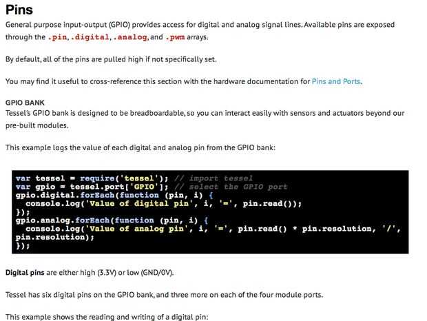 Configurar algo básico para asegurarse de que se puede conectar al sensor. Me gustaría empezar con el código de ejemplo: requieren Tessel, leyó el pin, ver qué tipo de valores se.