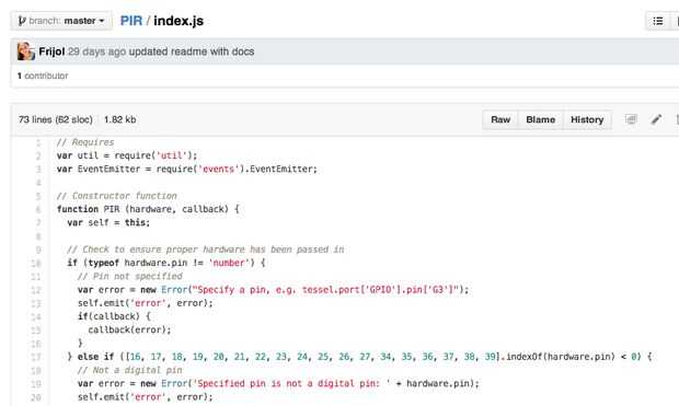 Comience con el constructor del objeto y la función de uso en archivo index.js. Asegúrese de que puede requerir el hardware y que conecte.