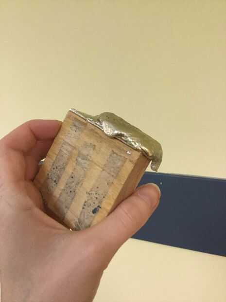 Sándwich de su molde y otro bloque de madera junto, es muy importante que se quedan tan apretados como sea posible. Derretir el estaño y viértalo en la apertura.