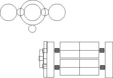 Aquí es una ilustración cruda utilizando círculos en vez de engranajes, es un dibujo básico de los engranajes que parecen debajo.