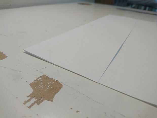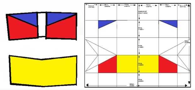 La primera foto muestra todas las áreas que serán visibles después de la construcción de la cartera y su posición en el pedazo de periódico plana.