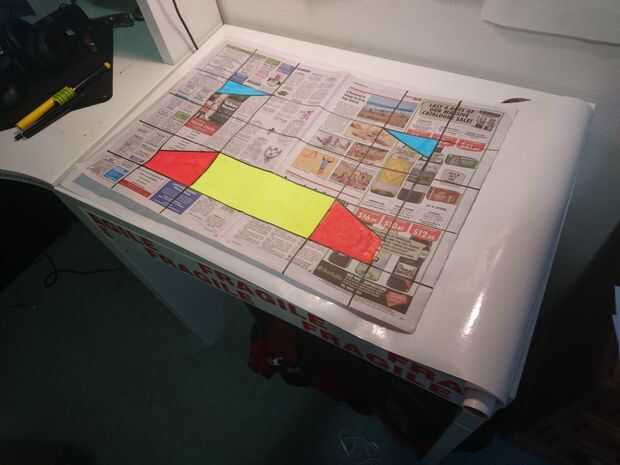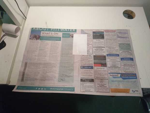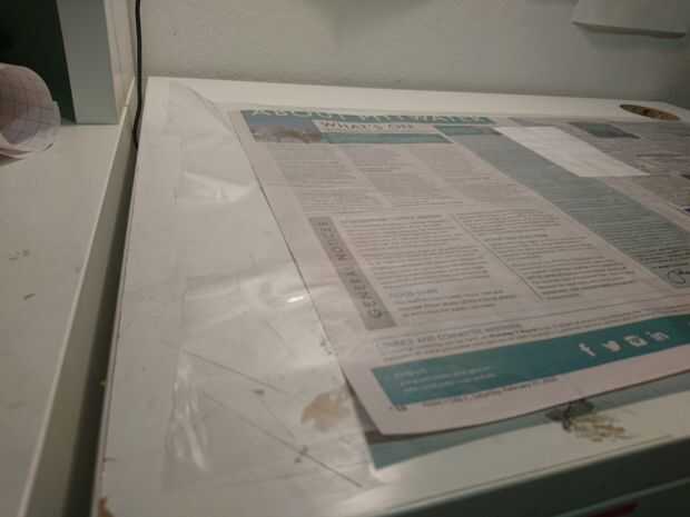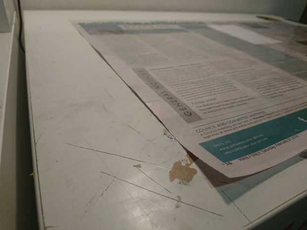 Aplicar contacto asegurándose de que cubrir todas las áreas del periódico.
