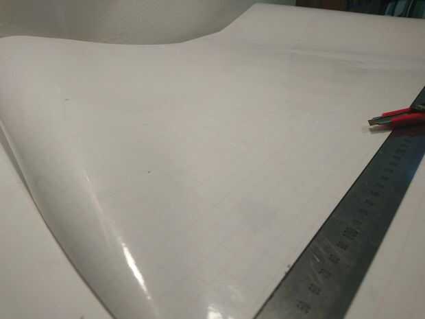 Después de haber aplicado el contacto cortado el exceso y asegúrese de que la pieza es el tamaño correcto (550mm / 21.65 en 385 mm / 15.16 en)