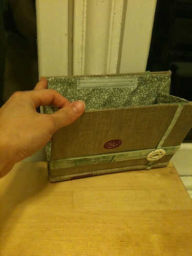 Variaciones: Algunas personas encuentran que el velcro no hace un gran trabajo de mantener la bolsa cerrada. Creo depende del grosor de la columna vertebral del libro, pero siempre podría hacer un cierre de broche de algún tipo y pegar al mismo tiempo como los mangos. Usted puede también obvio decorar la superficie del libro si es demasiado claro para usted.