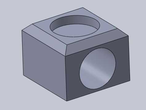 Saca esto por 2 pulgadas. Utilice la herramienta de chaflán con una distancia de 2 y un ángulo de 45 grados para modificar los bordes superiores del rectángulo. A continuación, crear un corte sacado de un cilindro de diámetro 1,00 pulgadas a través de todo. También, crear un corte extruido en la parte superior del rectángulo de 25 pulgadas de profundidad.