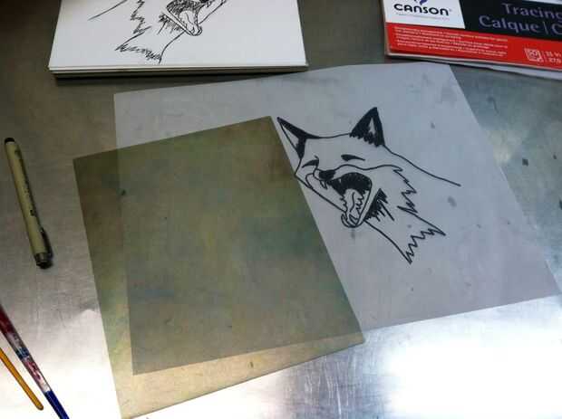 Tomar un dibujo ya existente o crear uno nuevo. Después de tener su dibujo toma una hoja de papel y trazar su imagen con un rotulador. Una vez que haya trazado flip el papel de calco sobre escritura frente y (recuerda cuando imprimir imágenes aparecen enfrente de lo que es en la placa! That's por qué este paso es nessisary si desea que su imagen aparezca como el dibujo original). Tomar el plato y coloque sobre su imagen y trace. Decidir qué colores que usted desee donde y marcar las zonas donde van los colores.
