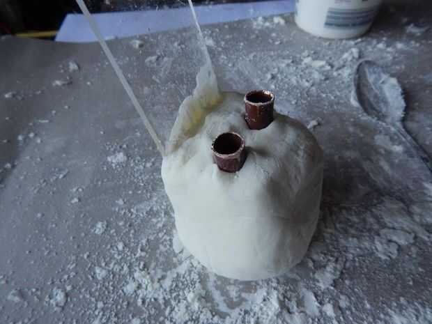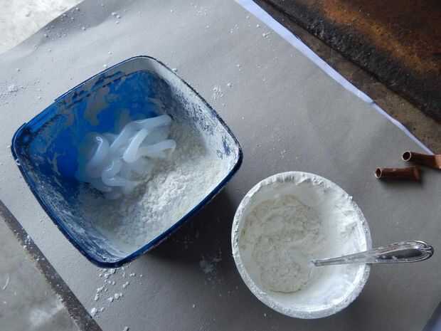 • Mezcla silicona y maíz harina en alrededor de 1:1 proporción por volumen. Para más detalles ver excelente Instructable cómo para hacer su propio Sugru sustituto de Mikey77. Esto funciona de amasar pan. No parece a cooperar al principio, pero pronto viene juntos para formar una masa bien elástica. Sólo utiliza las manos y agregar más harina Si siguió siendo demasiado pegajosa.