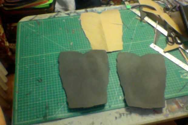 1. repetir todo el proceso que hiciste con los guanteletes. sólo una escala mayor. (Foto 5 y 6)