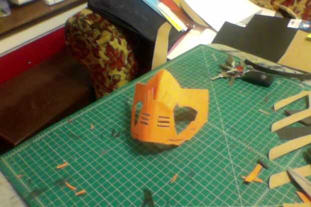 5. la máscara tenía estos paneles laterales. Primero nos estaban debatiendo sobre el uso de paño para llenarlo en, pero finalmente fue con una rejilla de malla de plástico. (pic 7 + 8)