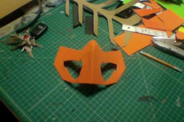 1. Comience con una cinta de medir y averiguar cómo las dimensiones de su cara. Dobla el papel por la mitad y empezar a dibujar en su diseño.