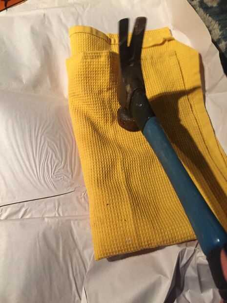 Paso 3: Tome su azulejo y envuélvalo en un paño. Usando un martillo, romper la baldosa.