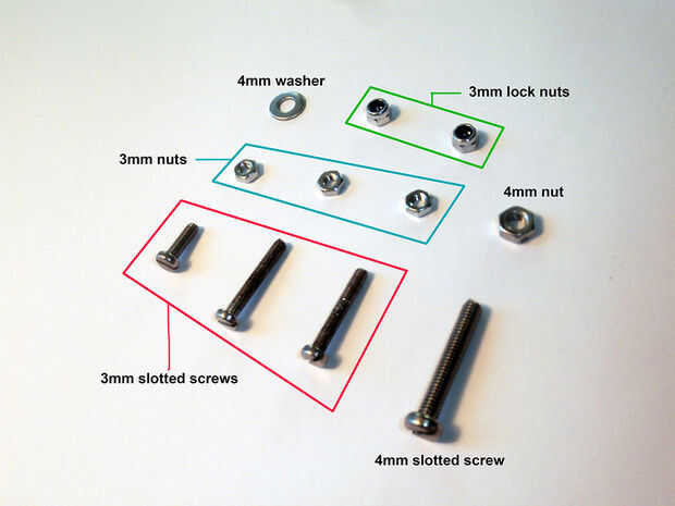 (3 X) tuercas y tornillos (3mm)