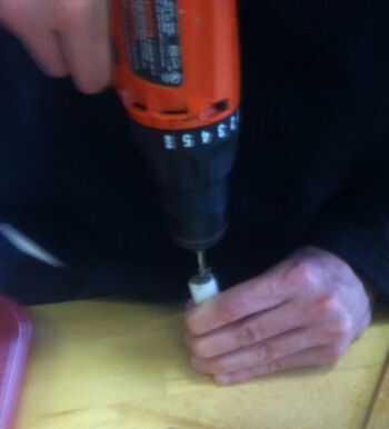 Una vez realizado el agujero, coge uno de las mechas y el lugar es en el orificio. Puede no muy seguro pero mover alrededor y tratar de que lo quieres. Para probar para ver si su mecha es segura, invierta el motor y ver si cae hacia fuera.