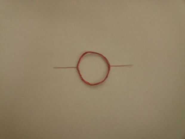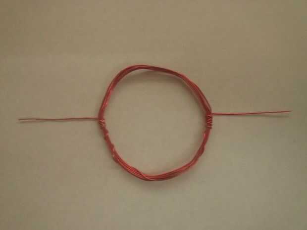 3. Luego tomar los extremos de dos hilos y envuélvalos alrededor de la bobina lo suficiente para que la bobina no se derrumbará (ahora debe ser aproximadamente una pulgada de largo)