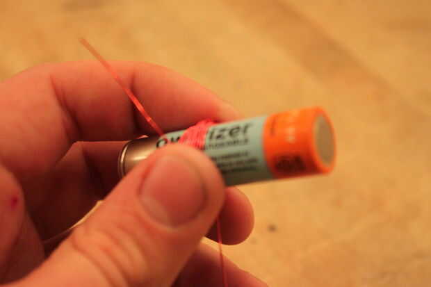 3. Seguir a enrollar el alambre de cobre alrededor de la batería AA; Asegúrese de que usted enrolla una bobina apretada agradable.
