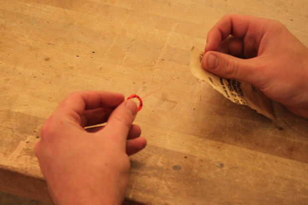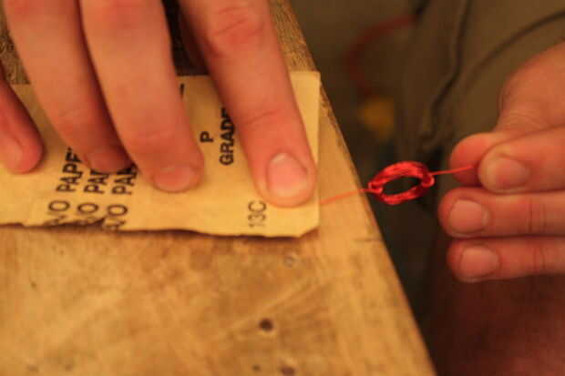 2. (Este paso es más importante que el primero) Empezar lijando solamente Un lado de los extremos finales del alambre de cobre. (Sólo un lado)