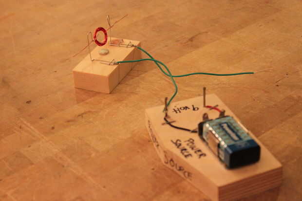 1. Descansar su bobina de cobre en los estantes de Clip de papel (Asegúrese de que los extremos expuestos de la bobina de cobre están haciendo contacto con los Clips de papel).
