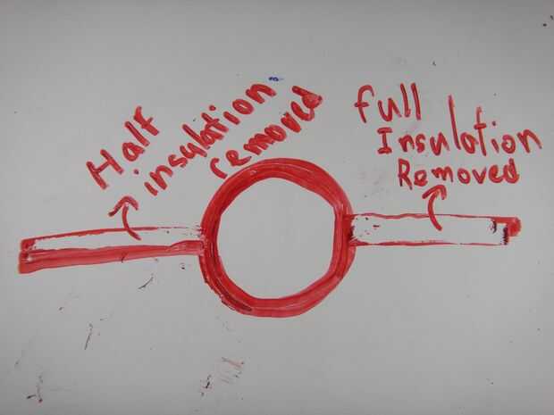 Pero por otro lado quitar sólo la mitadDe la aislamiento. Mire el dibujo siempre le mostrará cómo hacerlo.