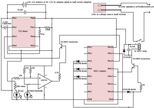 -no conectar la clavija de (normalmente abierta) del relé en su aparato o lámpara (si no entiendes esta parte véase el diagrama esquemático)