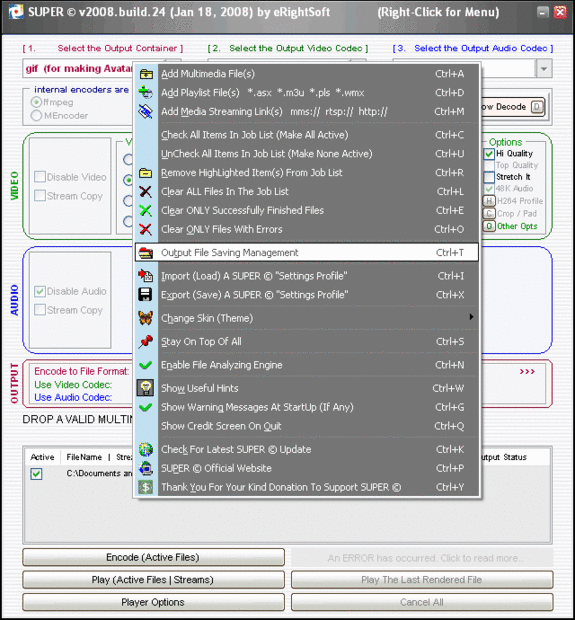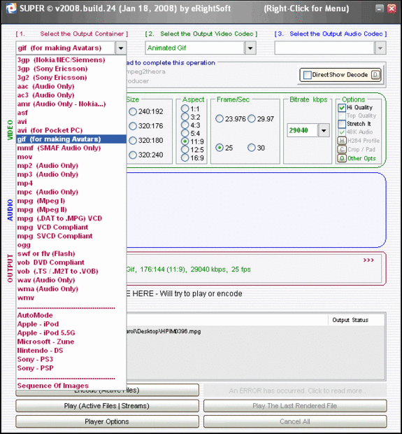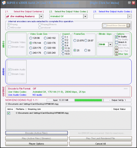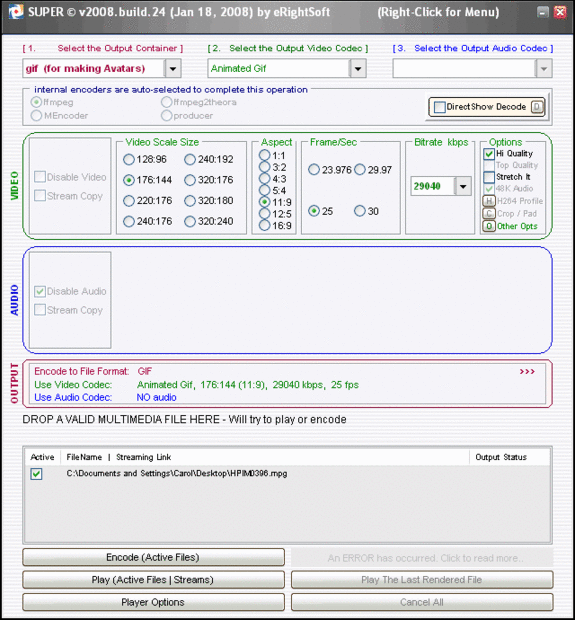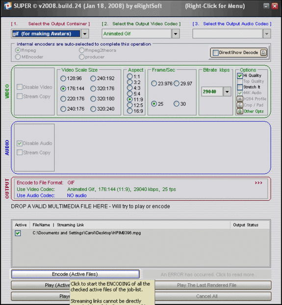 Después de descargar e instalar a SUPER abran el programa. Continuación, arrastre el vídeo de archivo en el programa y seleccione Gif y haga clic en codificar. Puedes mirar las fotos para obtener instrucciones más detalladas.