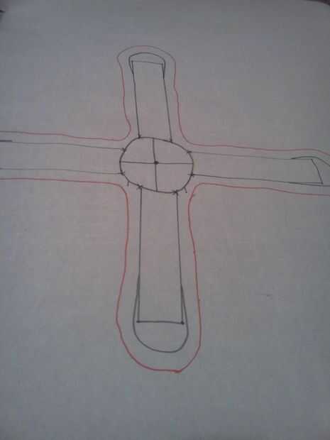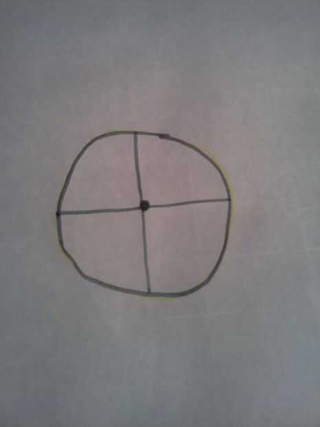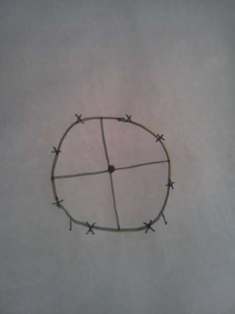 En el show de Mr.Octi normalmente tenía 4 brazos, sin embargo hubo muchas veces donde había más armas. Pero acaba de hacer 4, porque es la más fácil. Pero a los brazos tienes que coser las piezas de cuerpo/cabeza primero junto. sí, sé que es complicado pero tienes que averiguar el círculo inferior. Pero antes de hacer esa mano coser la cara!! Agradecerá a ti mismo más tarde, si no dará inicio a ti mismo como hice yo. Anywho... después debe coser en las cosas de cara y traza alrededor de él en un papel y marca el centro. Entonces dividen el círculo en cuatro partes, no tienen que ser todo perfecto. Luego marqué 1 1/2 pulgadas de la línea con una X. Desde que dibujé dos líneas perpendiculares de 5 1/2 pulgadas y una curva así. Después de todo eso, traza alrededor de él con un margen de costura de 1/4 de pulgada en un diverso color para ver mejor. Y recortar los brazos!!